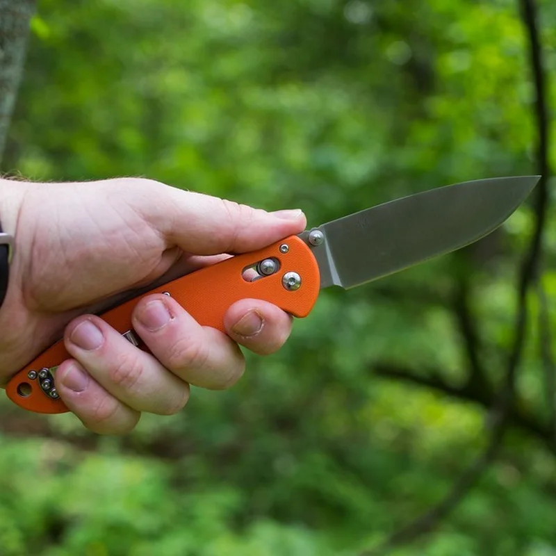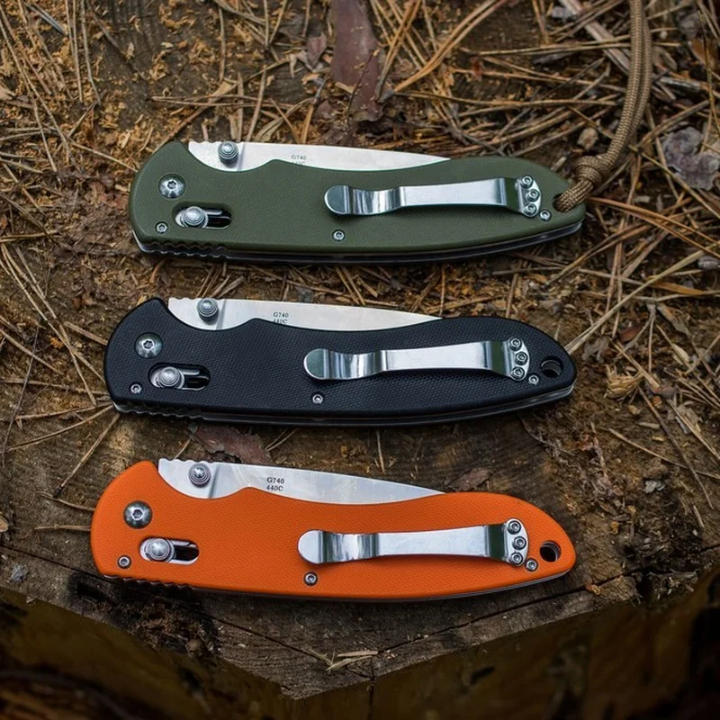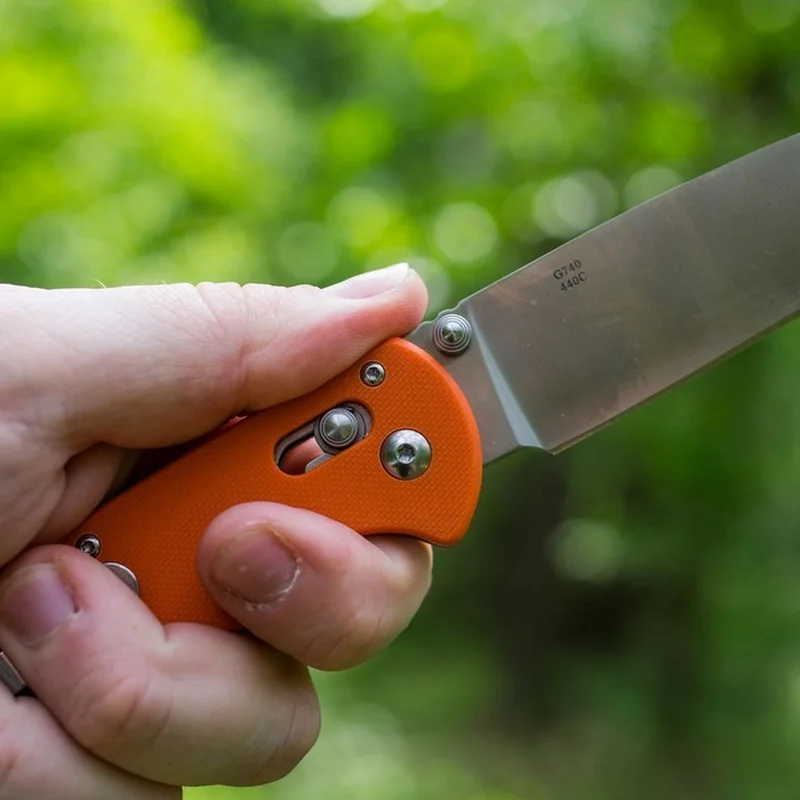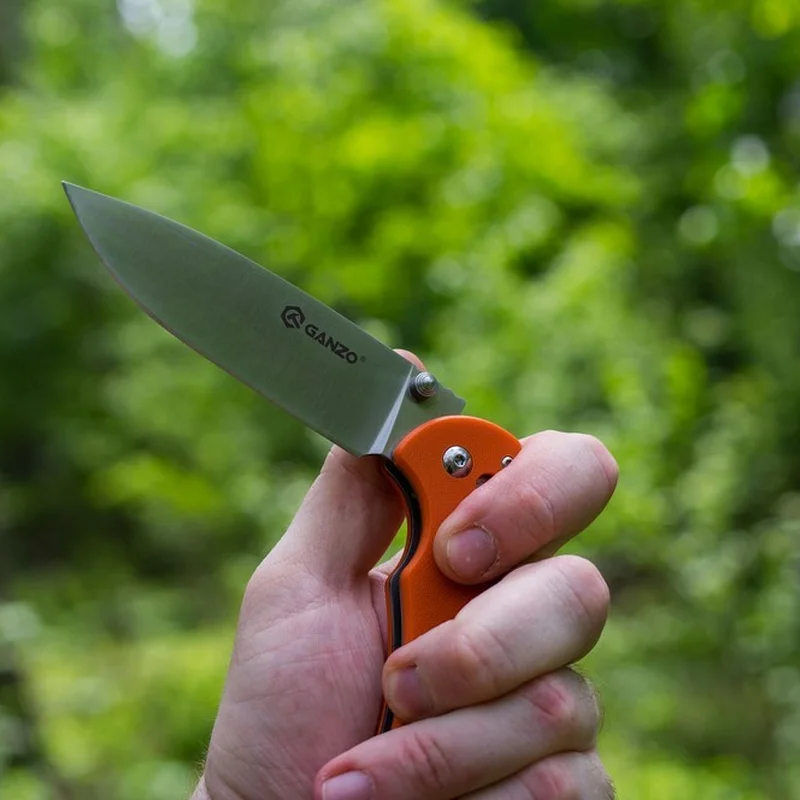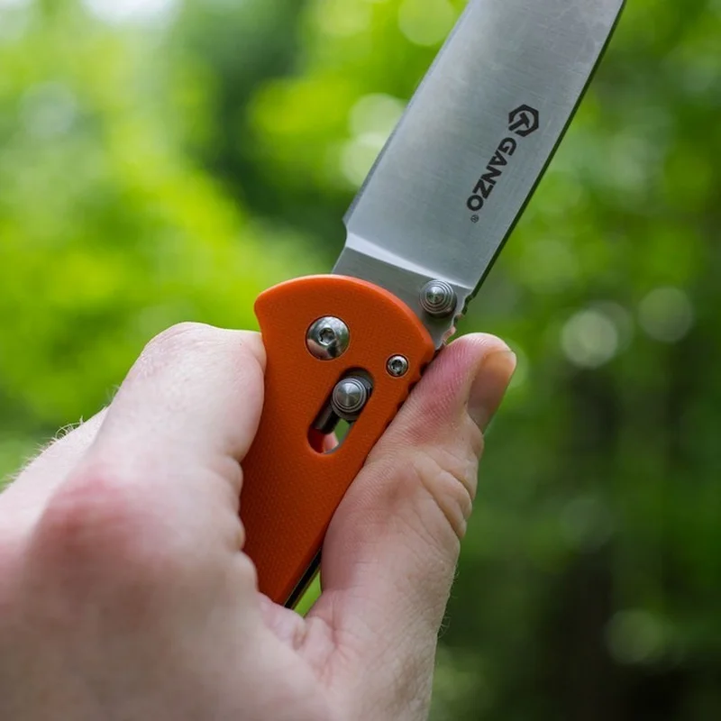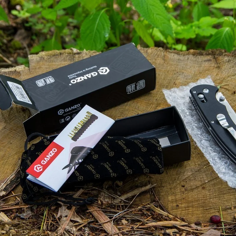 Ніж Ganzo G740 відрізняється від інших моделей досить значними розмірами. Але завдяки складаний конструкції, його все так само легко взяти з собою на поїздку на природу і використовувати як для стандартних робіт, так і для найбільш складних. Лезо ножа виконано з високоякісної твердої і нержавіючої сталі 440С.цей сплав відмінно збалансований щодо корозійної стійкості і твердості металу. Тому ніж не потребує особливо складного догляду: не іржавіє на риболовлі або в туристичному поході, довго залишається гострим навіть при постійному використанні. Довжина леза в даній моделі становить 9,5 см. воно рівно і гладко заточене по всій довжині. Товщина клинка теж трохи більше, ніж зазвичай пропонує компанія Ganzo і становить 3.5 мм.цим потужним клинком можна з легкістю обробити м'ясо, перерізати невеликі гілки, заготовити стружки для розпалювання багаття. При цьому, модель Ganzo G740 повністю відповідає нормам, які дозволяють говорити, що цей ніж не є зброєю і дозволений до використання широким колом людей.