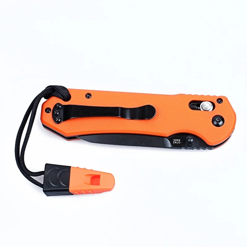 Приємне доповнення моделі Ganzo G7453 — це свисток, прикріплений до рукоятці за допомогою невеликого шнурка.