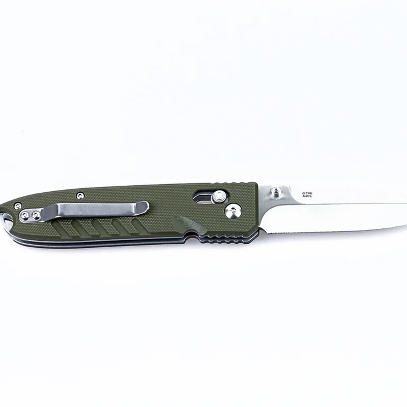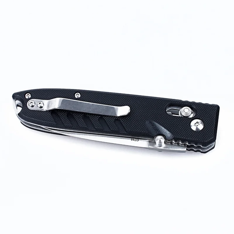 Для полювання, риболовлі, будь-яких інших поїздок на природу або ж активного відпочинку в межах міста, вам може знадобитися гарний ніж. Цю роль чудово виконає Ganzo G746-1. Він являє собою компактну кишенькову модель з клинком з твердої нержавіючої сталі (використовується марка 440С). Заточений ніж — гладко, за методом plain. Цей тип заточування дозволяє вільно працювати з переважною більшістю матеріалів. А шліфування методом сатинування робить лезо гладким і додатково захищає від корозії.