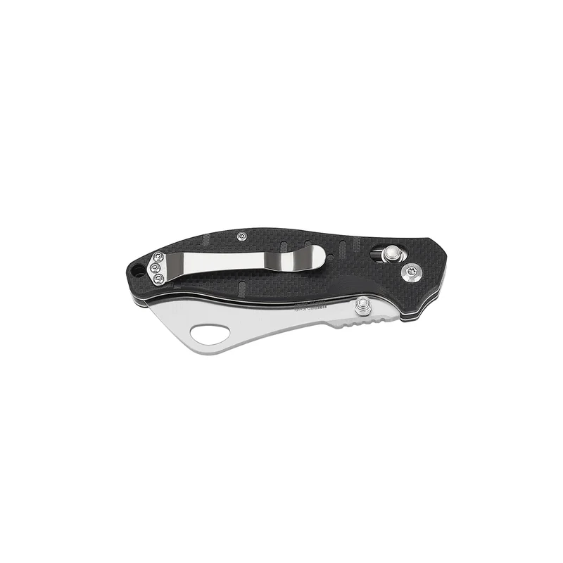 Модель цього складного ножа укомплектована замком Axis lock. Цей механізм дійсно надійно, повністю жорстко фіксує лезо в його крайньому положенні. Завдяки йому, ніж не може довільно скластися і використовувати його під навантаженням стає набагато безпечніше.