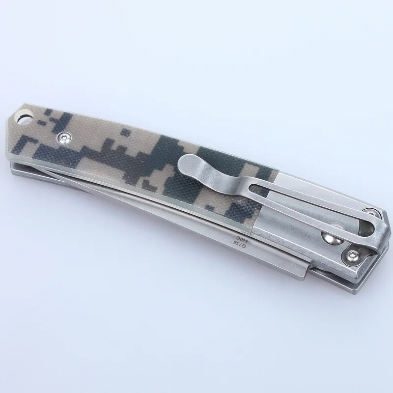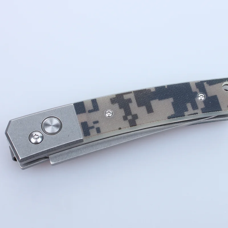 Рукоятка ножа має металевий ділянку ближче до клинку і накладки з сучасного виду пластику G10. Це композитний матеріал з епоксидної смоли і скловолокна. Він набагато міцніше інших видів пластику і відрізняється великою довговічністю. Завдяки тому, що G10 легко забарвлюється, покупці можуть вибрати ніж з ручкою зеленого, чорного або камуфляжного кольору. У кожному варіанті передбачено отвір для страхувального ремінця на руку і металева кліпса.