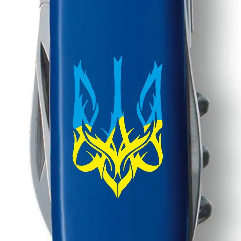 Найвідоміша модель складаного швейцарського ножа 91 мм на 12 функцій з патріотичної колекції SPARTAN UKRAINE. Середній розмір «швейцарця» з синіми глянсовими накладками, які поряд з логотипом Victorinox доповнені знаковою для кожного українця символікою. Відмінний набір кишенькових інструментів, щоб зустріти новий день у всеозброєнні. Від двох дуже гострих лез (3,5 і 6 см) до відкриток для консервних банок і пляшок, комбінованих з викрутками різного розміру на кінці. Штопор та дірокол з вушком для шиття. Корисний набір із пінцету та пластикової зубочистки в торцях накладок, за допомогою якого зручно дістати, наприклад, скалку.