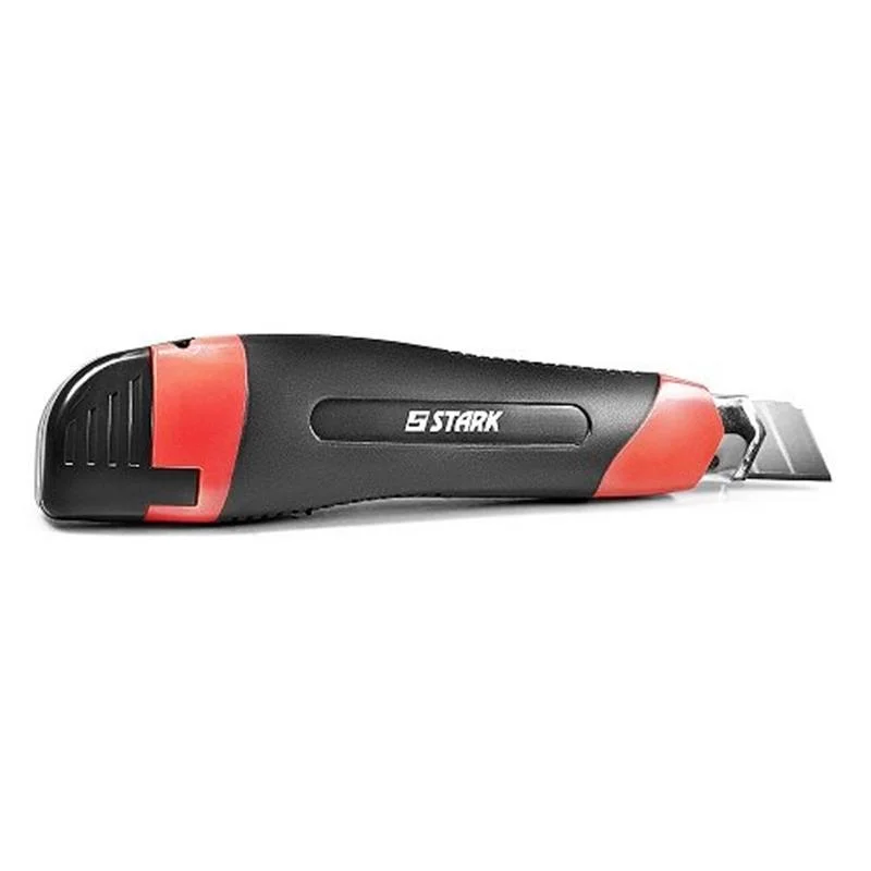 Stark 160 мм - сегментний ніж для виконання будівельних і ремонтних робіт, дозволяє різати різного роду матеріали: гумові, картонні, матерчаті, пластикові та ін. Лезо виготовлено з якісної сталі легко висувається і не ламається в процесі різання завдяки сталевий направляючої. Лезо має 16 позицій, а також автоматично фіксується. Ніж в пластиковому прогумованому корпусі зручно лягає в руці і не ковзає в процесі роботи.