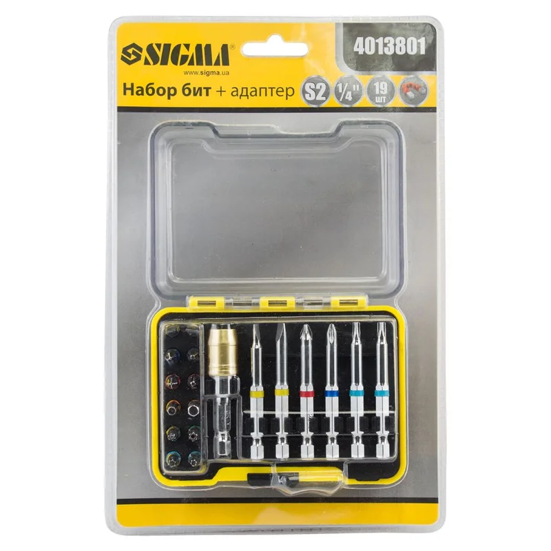 Набір біт + адаптер 19шт S2 Chrome (кейс) SIGMA (4013801)