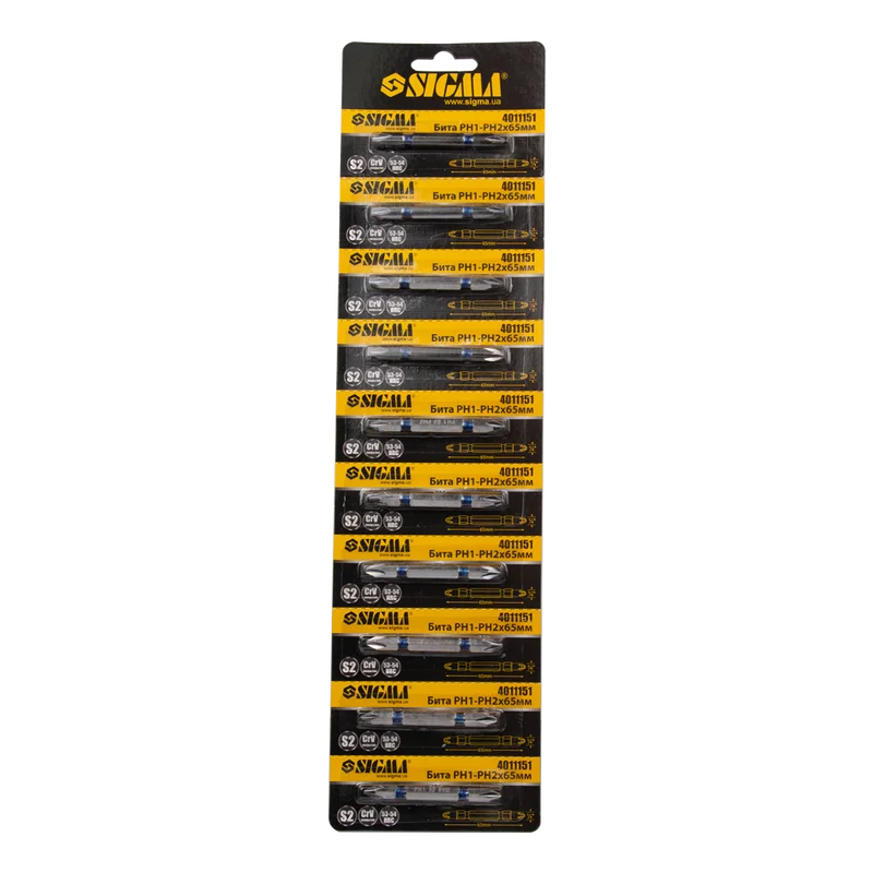 Набір біт двосторонніх PН1-PН2×65мм 1/4" 10шт S2 Chrome (стрічка) SIGMA (4011151)