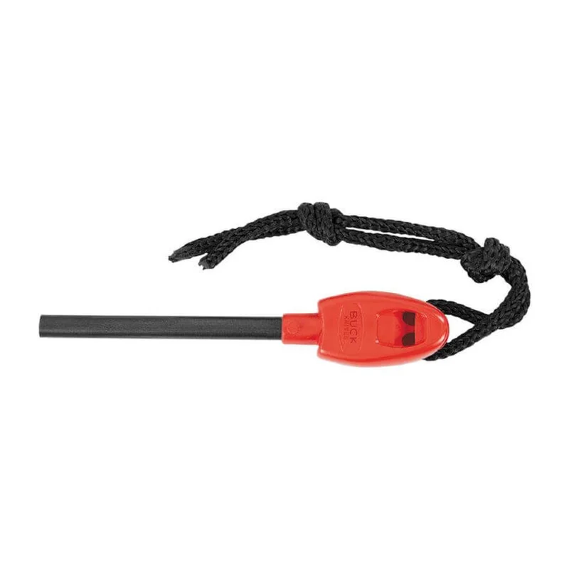 Ніж Buck Folding Selkirk-це складна варіація улюбленого набору Buck Fixed Selkirk. Цей набір ідеальний для походів, туризму і виживання у важких умовах, тому що додатково оснащений ферроцерієвим кресалом і свистком. Ферроцерій-феросплав, що містить 40-45 % церію, 18-25% лантану, 10-12% неодиму, 5-7% празеодиму, і не більше 15% заліза. Ферроцерій-синтетичний пірофорний сплав, що виробляє гарячі іскри, які можуть досягати температури 3000° C (5430° F) при швидкому окисленні в результаті удару. У промисловості такий матеріал застосовується для виготовлення крісальних каменів запальничок.