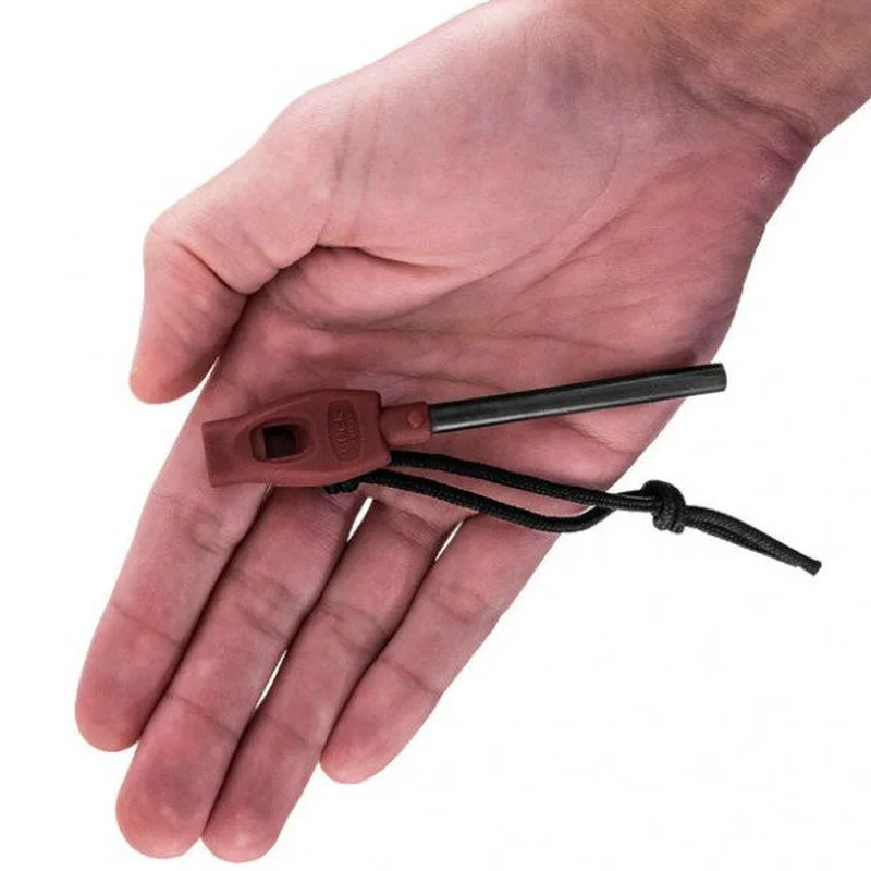 Ніж Buck Selkirk 863BRSB - створений для різних аутдор активностей і пригод, так як включає в себе складаний ніж і універсальне кресало зі свистком в практичному чохлі з литого пластику. Міцна нержавіюча сталь 420HC, доведена до твердості 58 HRC фірмової BOS-загартуванням від Buck, відмінно тримає заточку і не коррозирует при дотриманні звичайних правил догляду за лезом. Клинок підтримує мануальне відкриття і може розкладатися однією рукою, за допомогою симетричного шпенька.