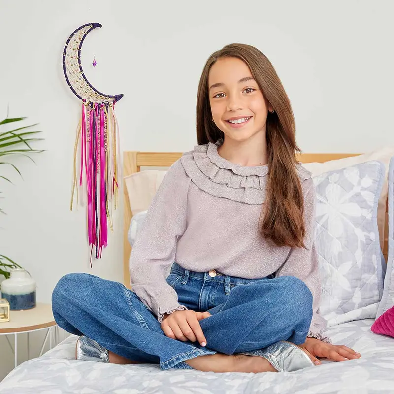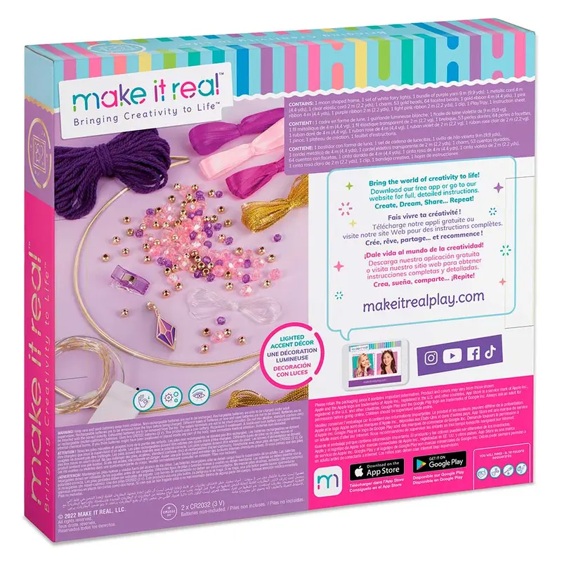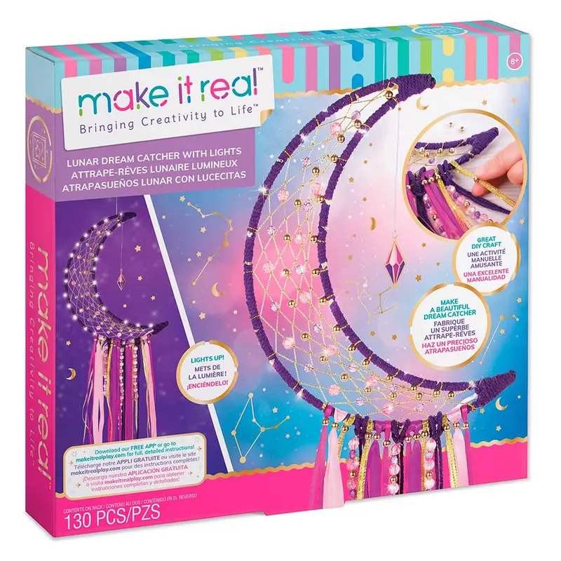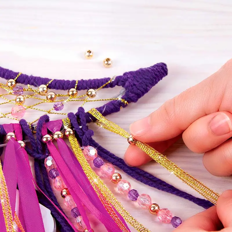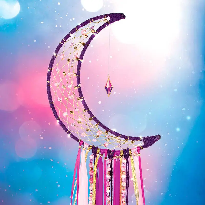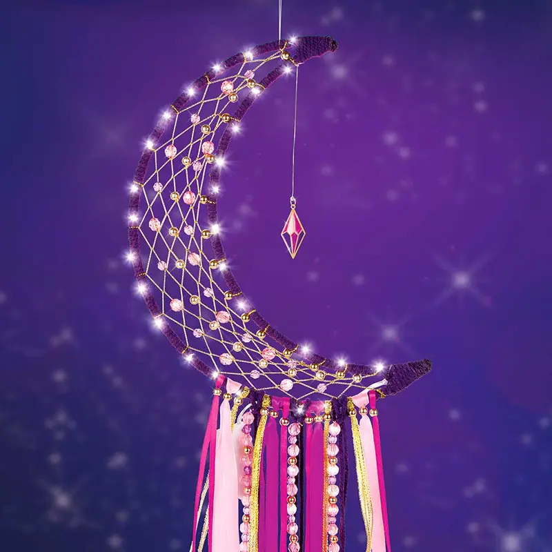 Осяйте дитячу кімнату за допомогою набору для творчості «Ловець снів» з підсвіткою. Дітям точно сподобається створювати власний амулет, прикрашений чарівними вогниками, які обов’язково наповнять затишком будь-яку куточок!Юні рукодільниці можуть додати неповторності своїй спальні, зоні для читання чи для виконання домашнього завдання тощо, створивши власний, неповторний ловець снів. Вони зможуть використати пряжу та металевий шнур, щоб сплести візерунок, прикрасити його красивими намистинками, задрапірувати шовковистими стрічками, а потім завершити свій виріб казковими вогниками!До набору входить:1 рамка у формі місяця1 комплект білих казкових вогників1 пучок фіолетової пряжі 9 м1 металевий шнур 4 м1 прозорий еластичний шнур 2 м1 оберіг53 золоті намистини64 гранованих намистини1 золотиста стрічка 4 м1 рожева стрічка 4 м1 фіолетова стрічка 2 м1 світло-рожева стрічка 2 м1 кліпса1 органайзер1 інструкціяПотрібні 2 батарейки CR2032 (не входять в комплект).Цей набір призначений для дітей віком від 8 років і стане ідеальним подарунком на день народження чи інше свято.