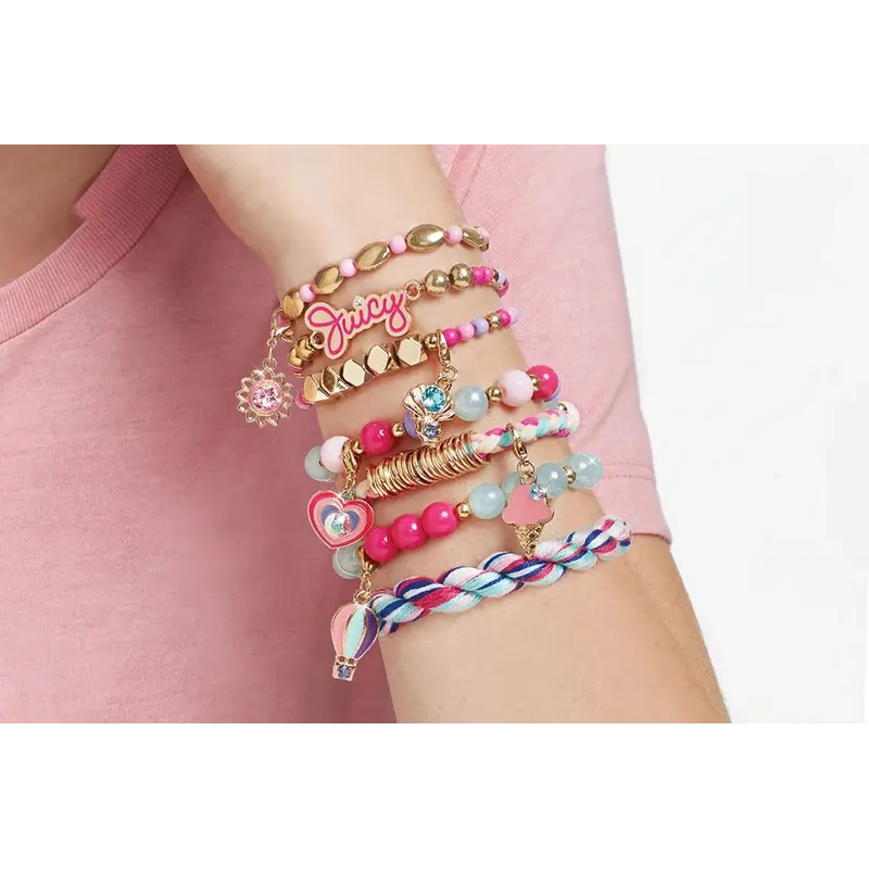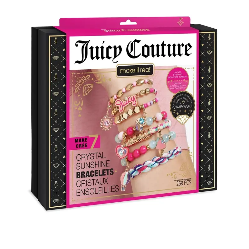 Набір для створення чудових прикрас із кристалами Swarovski від бренду Juicy Couture.Відчуй себе модною та стильною з модними та барвистими намистами, блискучими підвісками із кристалами Сваровські, які можна змішувати та поєднувати, створюючи унікальні прикраси!У цьому наборі є все необхідне для виготовлення та декору власних виробів. Вони будуть такі красиві, що всі подумають, що вони з розкішного бутіка!Набір для створення шарм-браслетів із кристалами Swarovski «Сонячне сяйво» допомагає молодим дівчатам розвинути дрібну моторику, зорові та тактильно-сенсорні навички - все це весело, створюючи приголомшливі прикраси та висловлюючи себе!У цьому наборі для ювелірних прикрас є все, що потрібно вашій дитині для створення безлічі комбінацій браслетів з 6 підвісками Swarovski Crystals, 223 різнокольоровими намистинами, 20 металевими кільцями та іншим деталям!