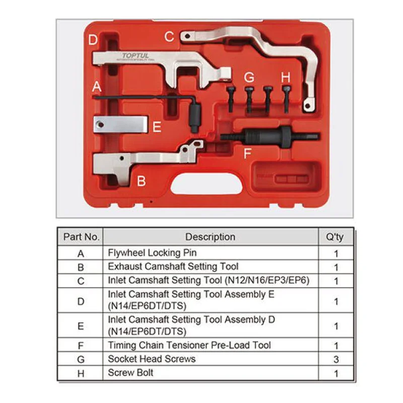 Набір фіксаторів розподільного вала 10 од. TOPTUL (Mini, Citroen, Peugeot) JGAI1004