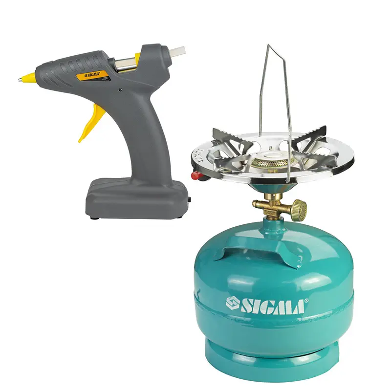 Набір газовий кемпінг із п'єзопідпалом Comfort 5 л + Пістолет термоклейовий автономний Ø 8 мм 8 Вт/6В SIGMA