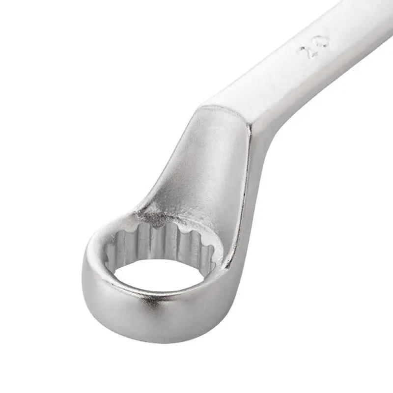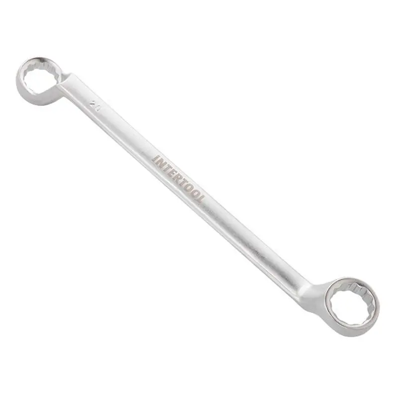 Накидний тип ключів з дванадцятьма гранями збільшує площу прилягання поверхонь та знижує ризик зриву граней гайок та болтів. Практична форма та вигин руків’я ключа забезпечують оптимальні умови для докладання зусилля, завдяки чому ви легко закрутите чи відкрутите кріпильний елемент.