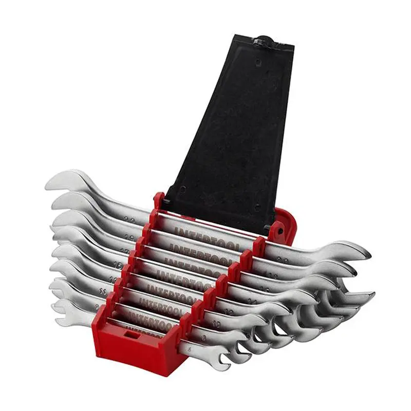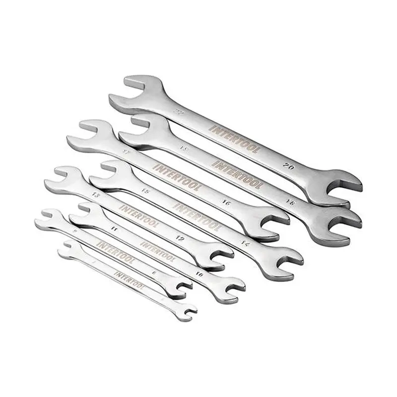 До набору INTERTOOL HT-1002 увійшли ріжкові ключі, розмірами: 6х7; 8х9; 10х11; 12х13; 14х15; 16х17; 18х19; 20х22 мм. Це дозволяє обрати необхідний розмір під будь-які завдання для монтажу та демонтажу різьбових з'єднань гайок та болтів.