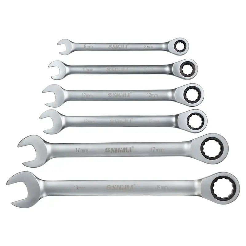 Набір ключів ріжково-накидних з тріскачкою 6шт (8, 10, 12, 13, 17, 19мм) CrV satine SIGMA (6010511)