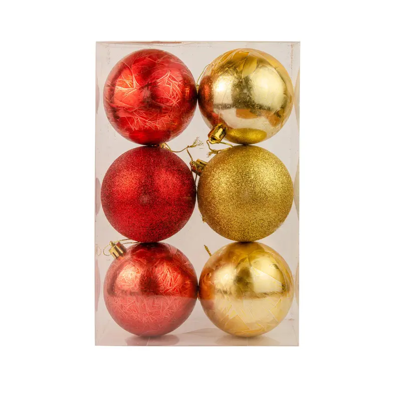 Набір кульок, 6 шт, Ø 8 см, пластик, колір червоний та золотий