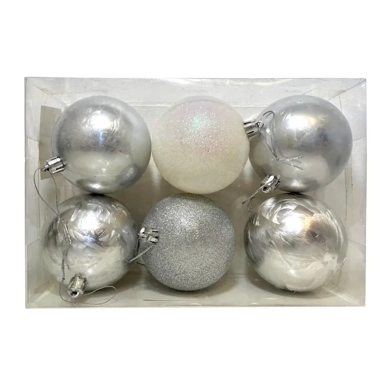 Набір кульок, 6 шт, Ø 8 см, пластик, колір сріблястий