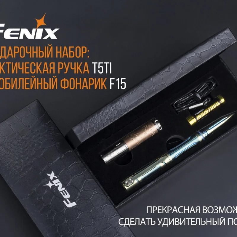 Набір ліхтар ручний Fenix F15 + Fenix T5Ti тактична ручка блакитна