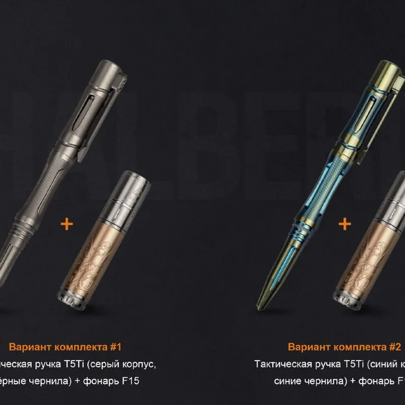 Тактичний ручка T5Ti має повністю титановий корпус. Він легкий, дуже міцний, захищений від різних видів корозії. До того ж, завдяки обробці на ЧПУ обладнанні, виглядає корпус дуже стильно. Він може бути блакитного або ж сірого кольору. Со зворотного боку ручку встановлений вольфрамовий стрижень, який здатний дробити скло і навіть камінь. Воно твердість виробники оцінили на рівні 89-92 HRC.