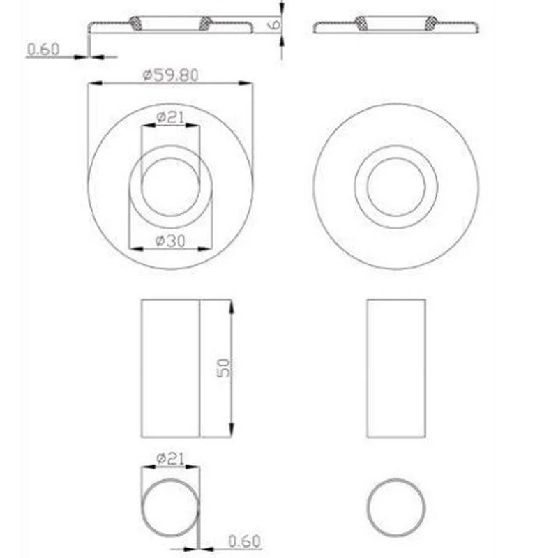 Ексклюзивний набір розет з гільзами призначений для маскування декоративного з'єднання єднання радіатора. З'єднання єднання з системою оплення з PEX чи мідних труб. Розетки встановлюються в будь-якому проміжку, альо не менше 80 мм. Маскувальні гільзи довжиною 50 мм сумісні з 16-міліметровою PEX та 15,18 мм мідною трубкою. Спеціально використаний відповідний тип латуні, з якого виготовлені гільзи, полегшує їх укорочення до відповідної довжини. Розетка виконана з нержавіючої сталі покрита кольром подвійно захищена від корозійної конденсації. Упакований у блістер. УВАГА! Розетки слід встановити перед підключенням радіатора до системи опалення. Для вкорочення гільз слід використовувати спеціальні ножиці для різання мідних труб
