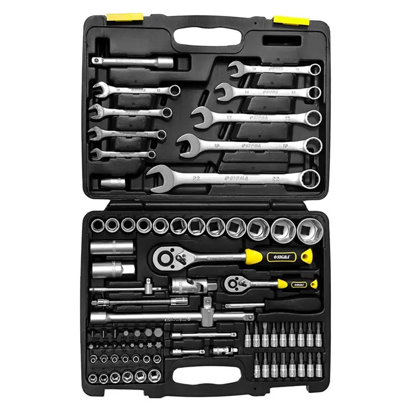 Набір насадок торцевих і біт 1/4", 1/2" 82шт CrV Taiwan SIGMA (6001021) призначений для роботи з різьбовими з'єднаннями при ремонті і обслуговуванні автомобілів. Інструменти виготовлені з хромванадієва стали і мають матове покриття. Поставляються в ударопрочном, пластмасовому кейсі.