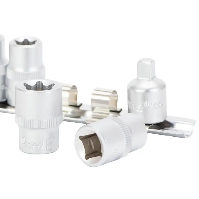 Набір насадок виконаний з хромованадієвої сталі 50BV30 та має захисне трьохшарове хромонікелеве покриття, що збільшує захист від корозії та подовжує строк служби інструменту. Матеріал, з якого виготовлені головки, має стійкість до високих навантажень, зносу та деформації.