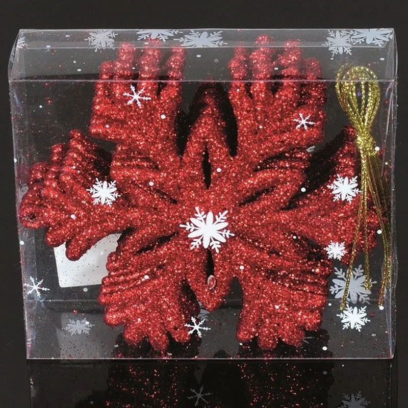 Набір новорічних прикрас 10 см, Сніжинка, 6 шт, пластик, червоний з блисткітками