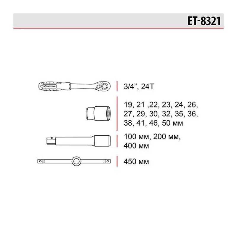 Набір інструментів 3/4", 21 од., Cr-V STORM INTERTOOL ET-8321