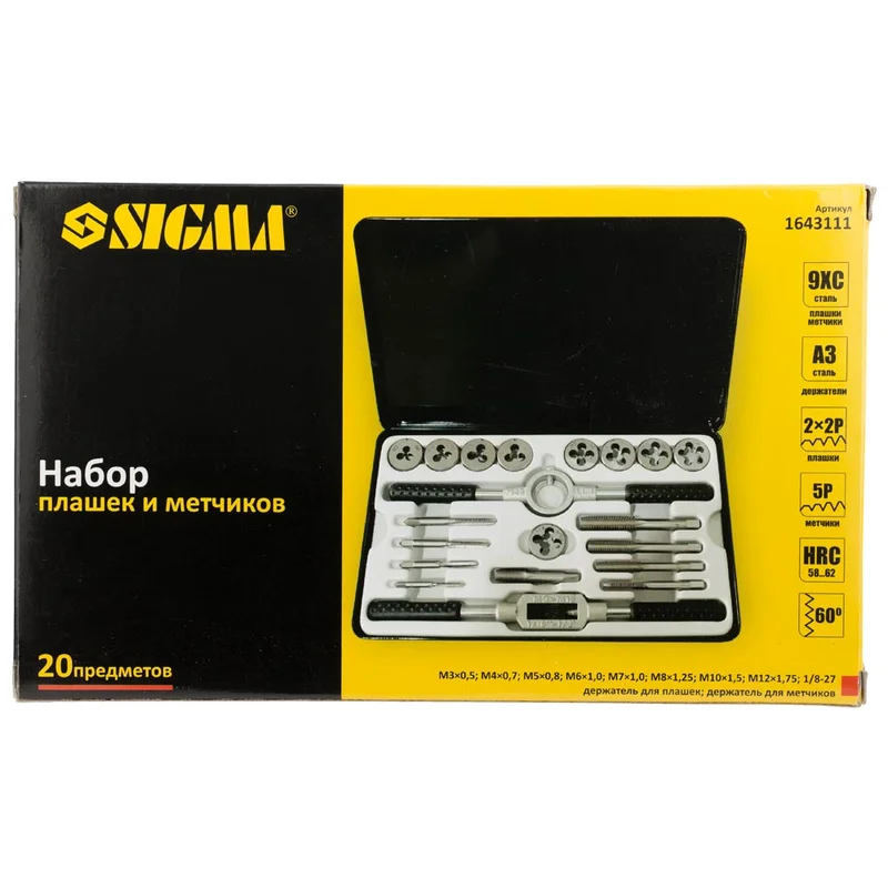 Набір плашок і мітчиків 20 предметів (металевий кейс) SIGMA (1643111)