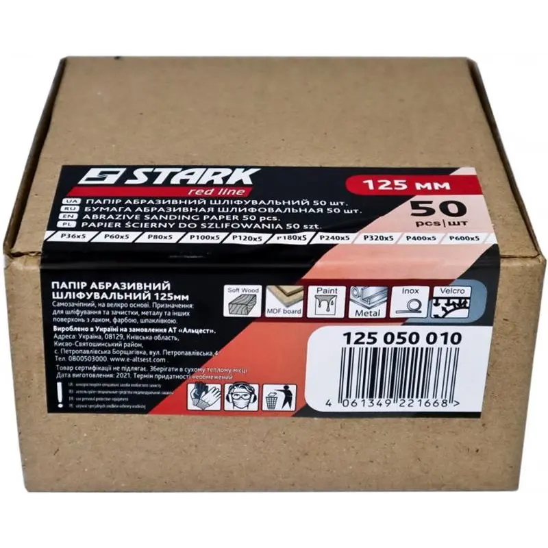 Набір шліфувального паперу Stark 125 мм 50 шт. Р36, Р60, Р80, Р100, Р120, Р180, Р240, Р320, Р400, Р600 (125050010)