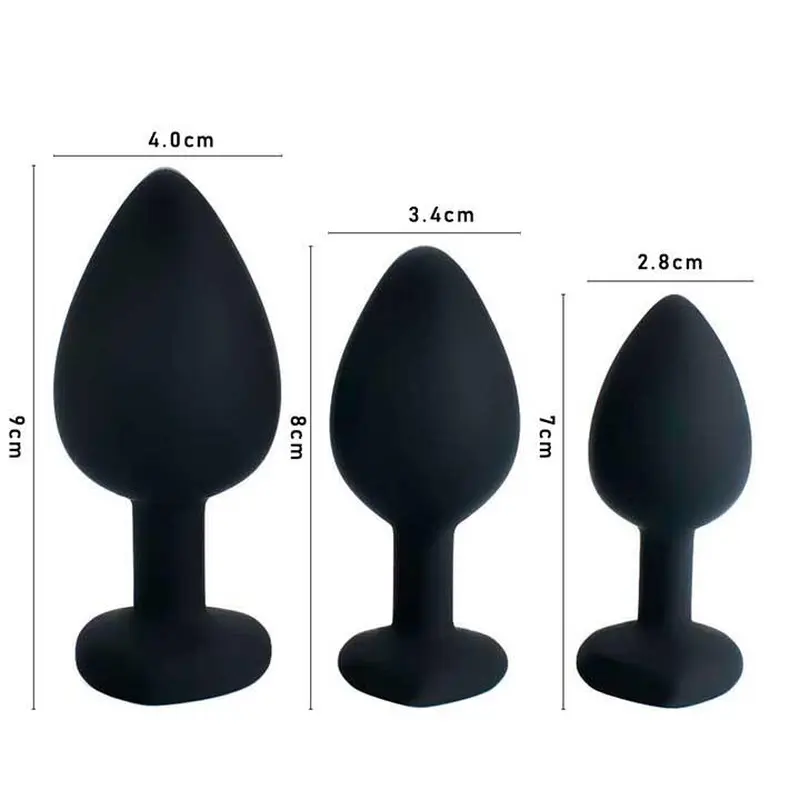 Набір силіконових анальних пробок "Сердечко" з кристалом - Червоний - 3 шт (S/M/L) - Анальні іграшки