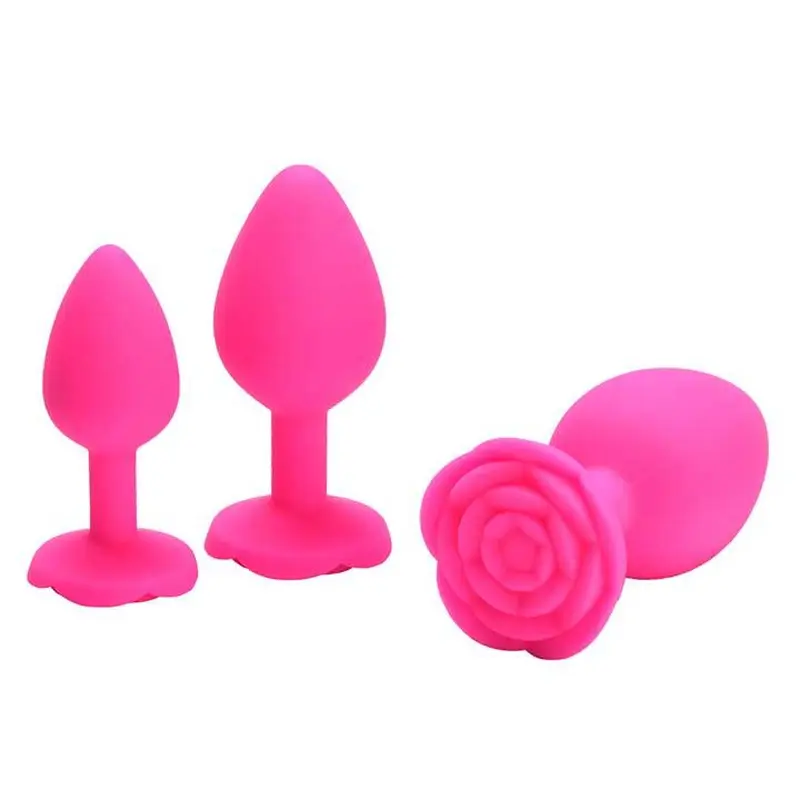 Набір силіконових анальних пробок "Троянда" - 3 шт. (S/M/L) - Рожевий — Анальні іграшки