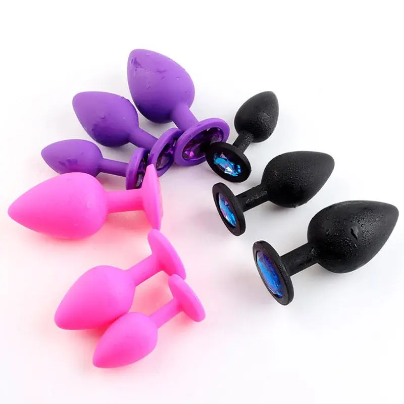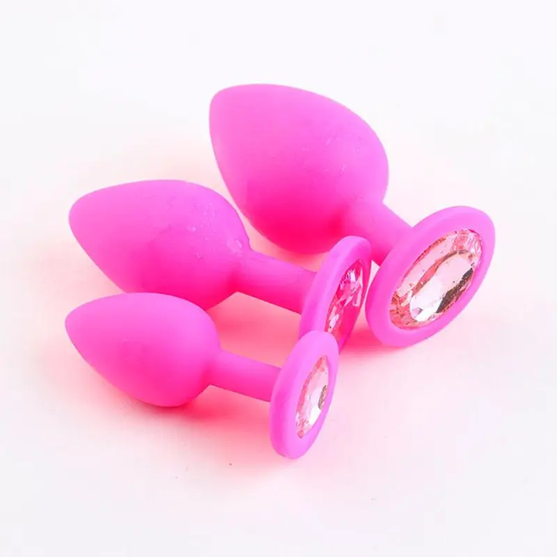 Набір силіконових анальних пробок з кристалом - Червоний - 3 шт (S/M/L) - Анальні іграшки