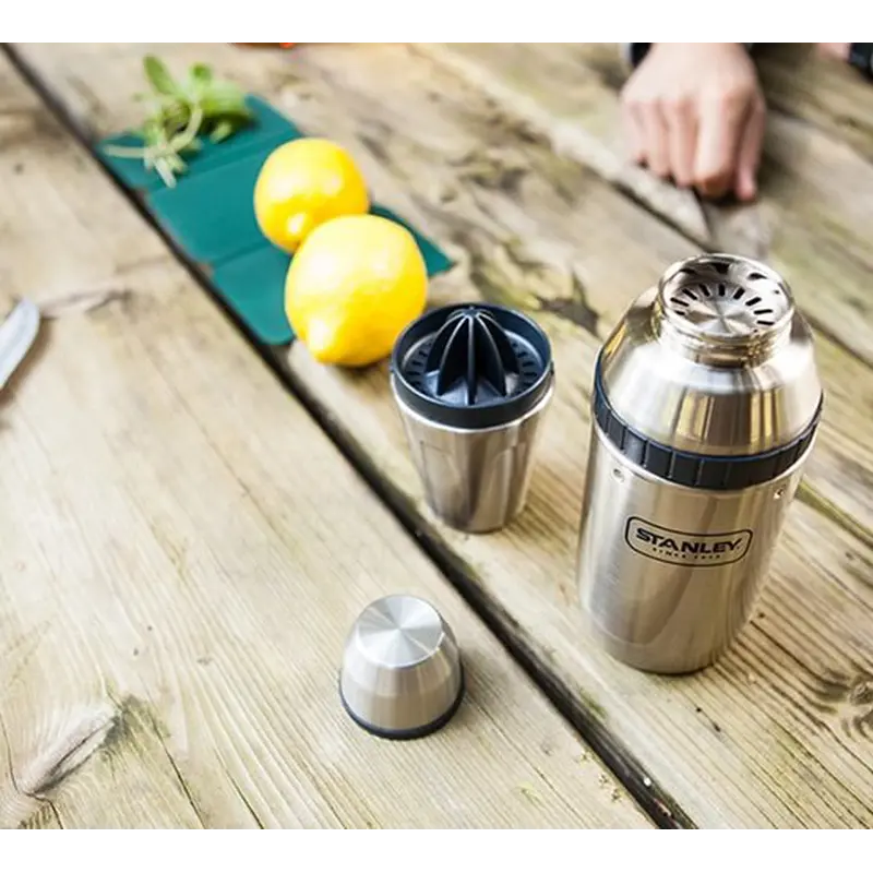 Набір Stanley Happy Hour System - це прекрасний подарунковий набір який включає в себе шейкер об'ємом 590мл, 2 склянки місткістю 200мл та прес для цитрусових. Корпус і кришка шейкера, а так само склянки виконані з нержавіючої сталі, а прес для цитрусових виготовлений з високоякісного пластику. Це чудовий набір, який дозволить приготувати самостійно коктейлі або улюблені фреші на дачі, за містом, на риболовлі чи відпочинку на природі. Оригінальний та якісний набір послужить відмінним подарунком для бармена або для людей, які захоплюються приготуванням напоїв. Представлений набір легко миється, як за допомогою миючих засобів, так і в посудомийній машині.