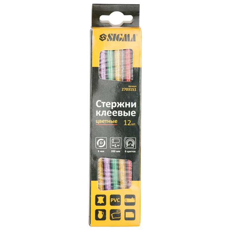Набір стрижнів клейових Ø8×200мм 12шт 0.2кг (кольорові) SIGMA (2703151)