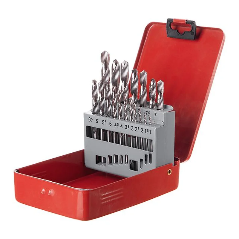 Все завжди на своїх місцях і не розсипаються при транспортуванні, оскільки набір поставляється в зручній металевій коробці. Маркування під кожним свердлом дозволяє швидко вибрати необхідний діаметр.