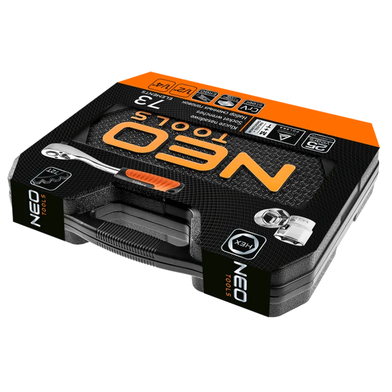 Набір торцевих ключів і змінних головок Neo Tools (73 предметів) (08-673)