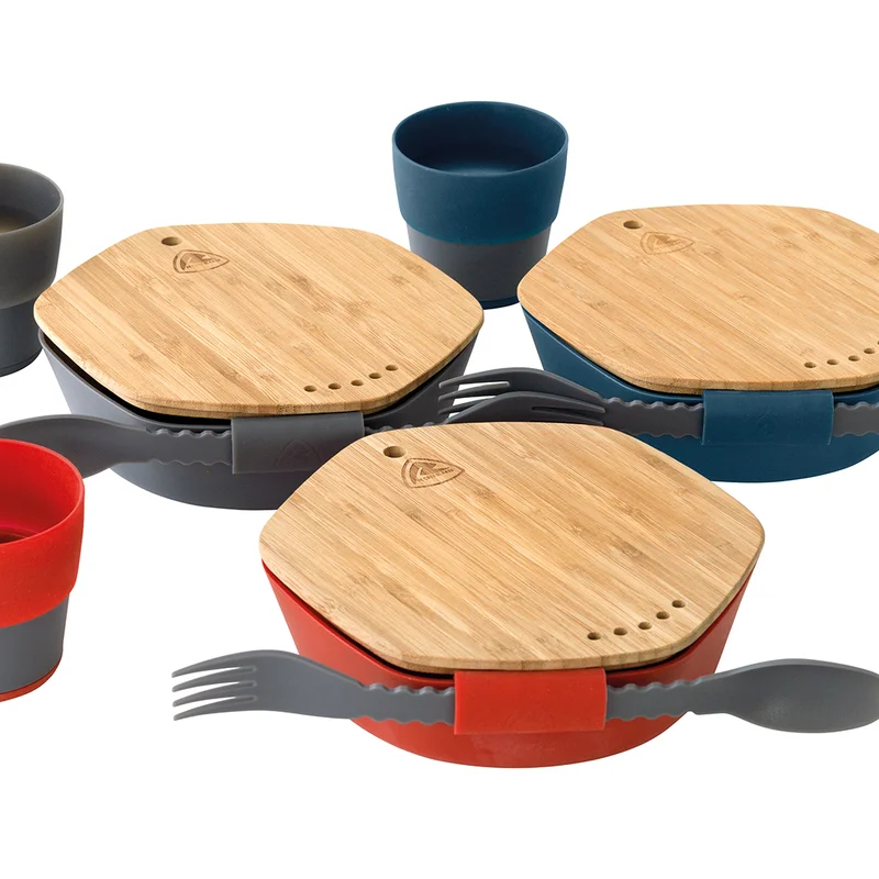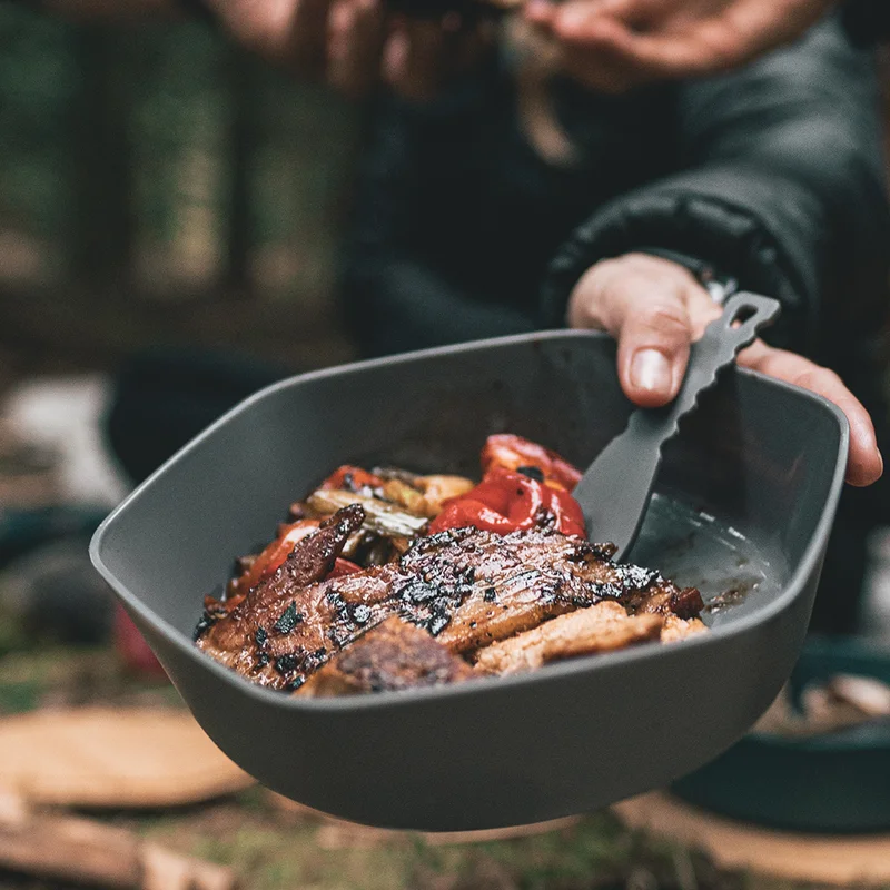 - Приймати Їжу в поході стало легко - шість предметів в одному наборі: миска, кришка/обробна дошка, ложка, виделка, чашка, коннектор.