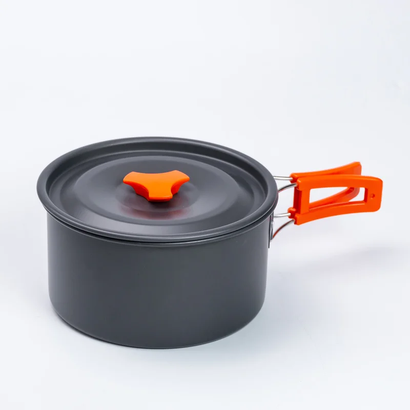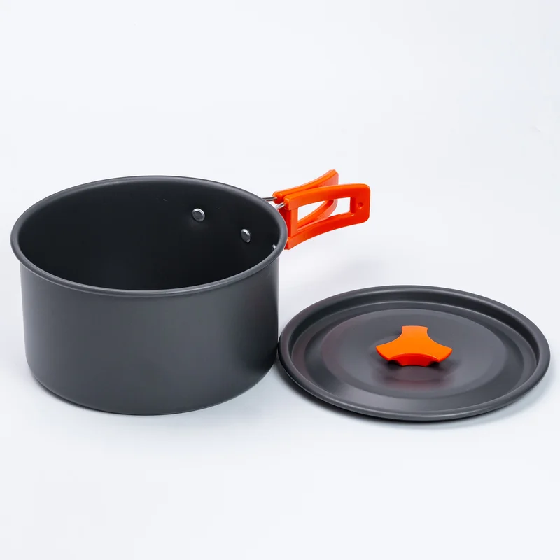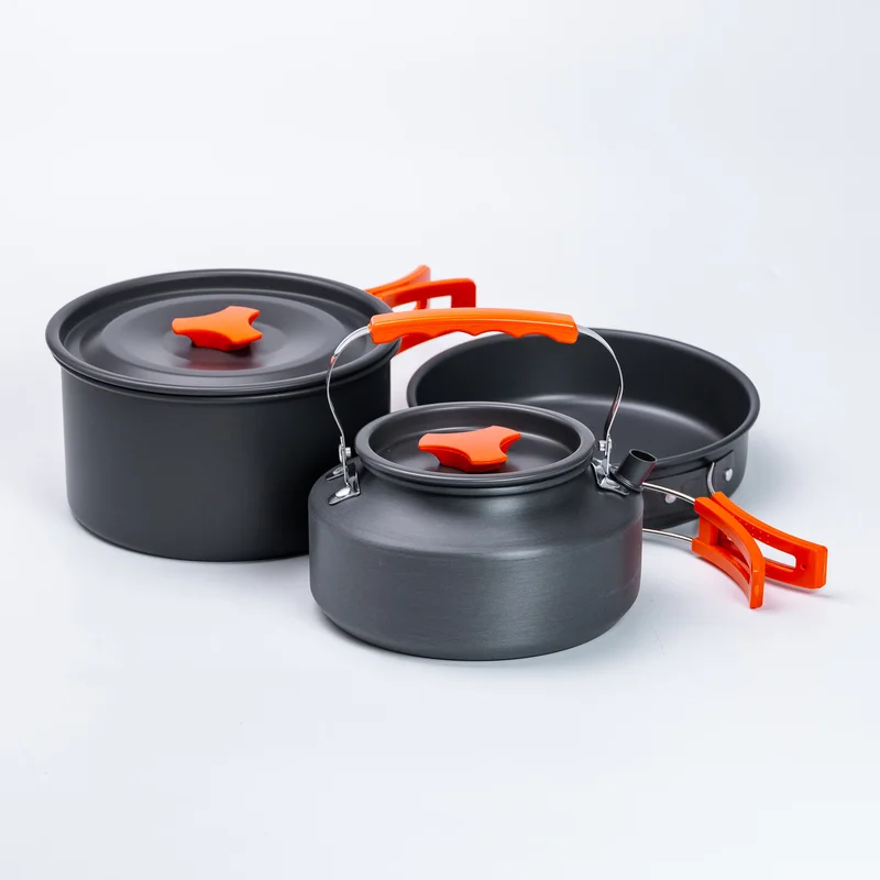 Набір туристичного посуду в сумці для походу та кемпінгу: каструля, сковорода, чайник
