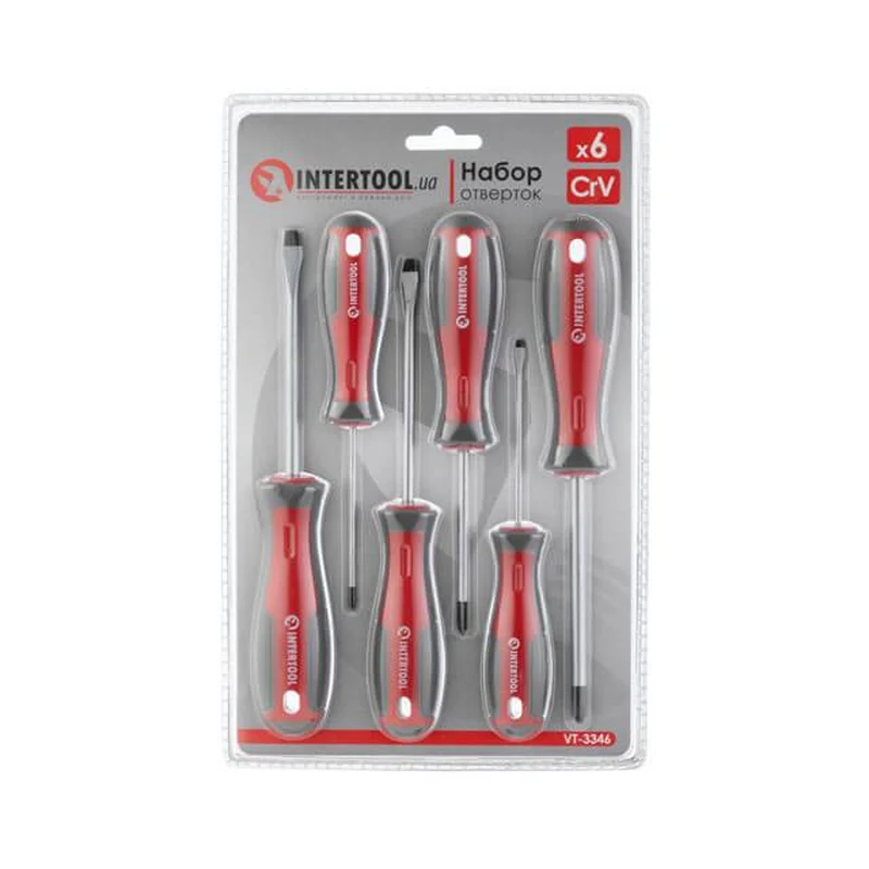 Набір викруток 6 од (SL3.0 * 75 мм, SL5.0 * 100 мм, SL6.0 * 100 мм, PH0 * 75 мм, PH1 * 75 мм, PH2 * 100 мм) INTERTOOL VT-3346