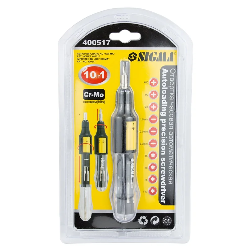 Набір викруток для точних робіт 10в1 з автомат заміною біт CrV SIGMA (4003071)