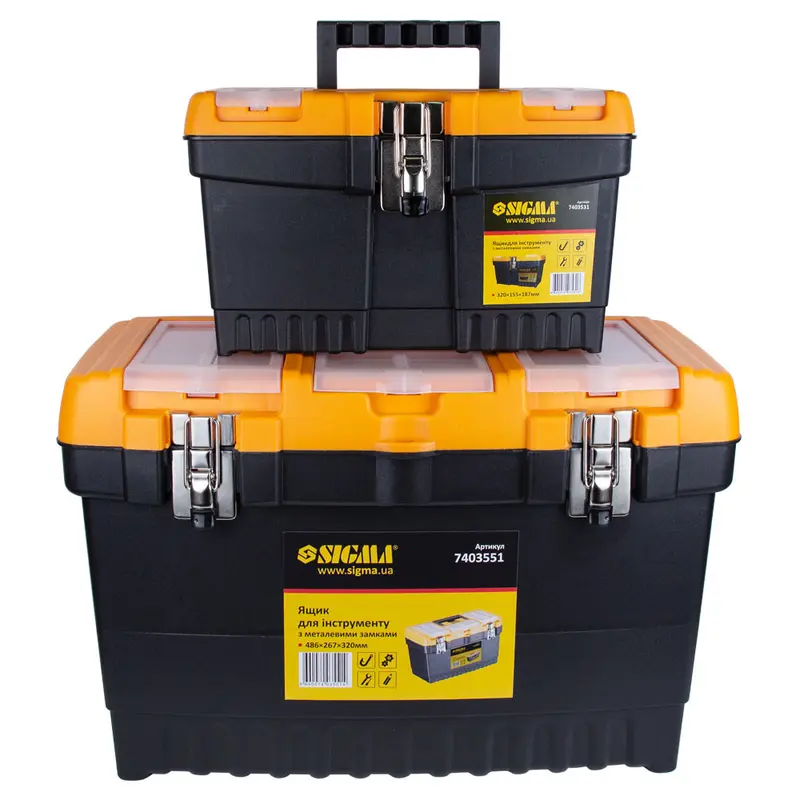 Набір ящиків для інструменту 2в1 металеві замки 320×155×187мм, 486×267×320мм Sigma (7403511)
