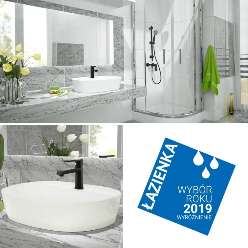 Набір змішувачів чорний Invena Siros (змішувач для умивальника + змішувач для душу + душовий гарнітур)