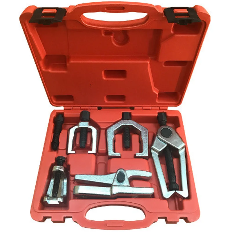 Набір знімачів кульових опор і рульових наконечників 6 од. СТАНДАРТ NSK0501:Універсальний набір для легкого зняття рульової сошки, кульових опор і рульової тяги;Прес знімача кульових дозволяє безпечно в порівнянні з вилкою зняти кульові опори;Всі комплектуючі набору виготовлені з хром-ванадієвої сталі, методом кування з наступною термообробкою, що гарантує високу міцність, має високу корозійну стійкість, стійкість до зламів і тривалий період експлуатації;Інструмент відповідає стандарту Німецького Інституту Стандартизації DIN (Deutsches Institut fur Normung) і міжнародним стандартам ISO 9002 та ISO 9001;