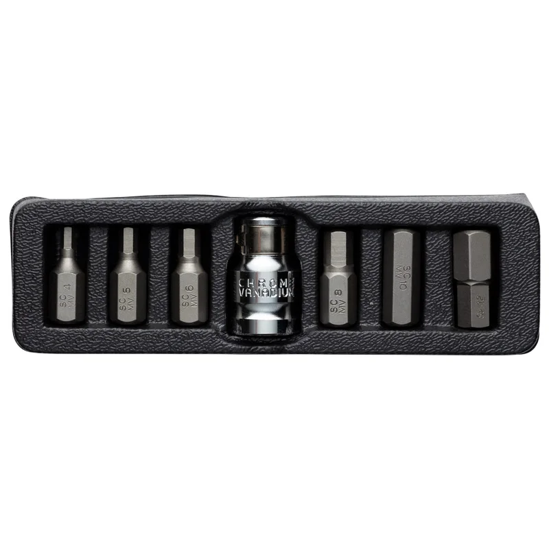 Набір біт HEX 1/2" 7шт S2 (пласт кейс) ULTRA (4013202) виготовлений з легованої сталі S2, що поєднує в собі високу твердість (50-53 HRC) з зносостійкість. Мають центральне глухе отвір, що дає можливість працювати з кріпленнями, які мають нестандартний робочий профіль. Для зручності зберігання і транспортування біти упаковані в пластиковий кейс.