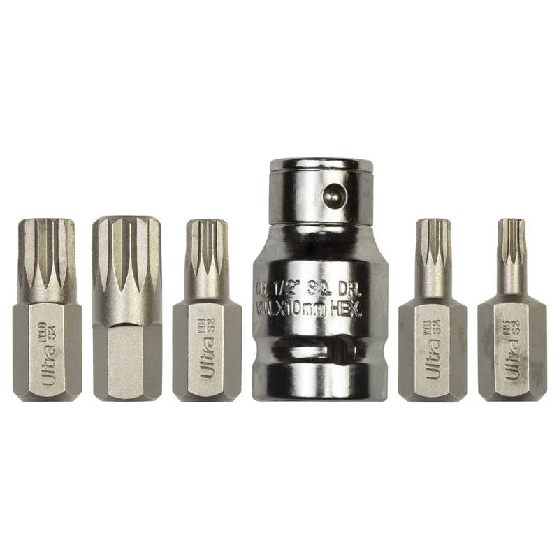 Набір біт Spline 10мм 6шт S2 (пласт кейс) ULTRA (4016982) призначені для професійного використання. Виготовлені з легованої інструментальної сталі S2 з поверхневим зміцненням до твердості 58-61 HRC струмами високої частоти (СВЧ). Мають проточенну головну частину для роботи у вузьких місцях.