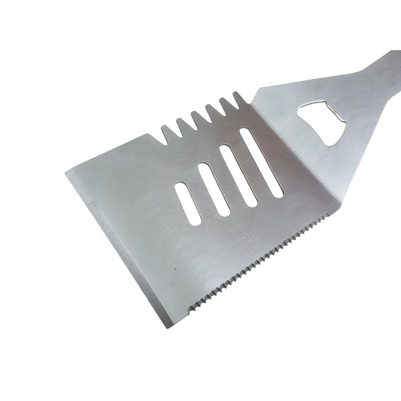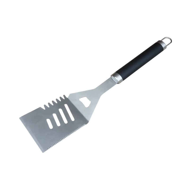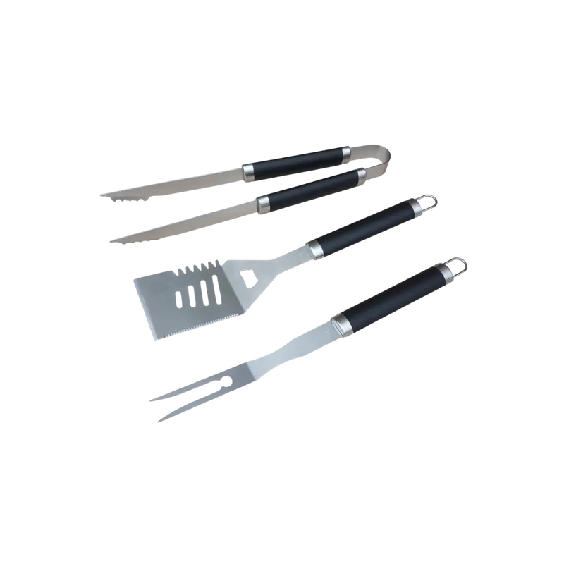 Набір для гриля Time Eco TE-40B — це ідеальний вибір для всіх поціновувачів барбекю та смаження на відкритому повітрі. У комплект входять три інструменти: щипці, вилка для м’яса та лопатка, виготовлені з міцної нержавіючої сталі товщиною 1,5 мм. Ергономічні прогумовані ручки забезпечують комфортний і безпечний захват, а можливість підвішування робить зберігання зручним та компактним. Інструменти легко миються, зокрема в посудомийній машині, що робить догляд за ними максимально простим.Особливості Високоякісна нержавіюча сталь товщиною 1,5 мм гарантує міцність і довговічність кожного інструмента; Прогумовані ручки забезпечують надійний захват навіть у спеку чи за вологості; Аксесуари для гриля можна підвішувати — зручно зберігати на гачку або рейлінгу; Підходять для миття в посудомийній машині, що заощаджує час і сили після приготування; Компактний розмір упаковки — зручно брати з собою на природу чи в подорожі; Лопатка: 42,5 × 9 × 2,3 см, щипці: 42,5 × 3 × 2,3 см, вилка: 42,5 × 2,5 × 2,3 см; Вага набору — лише 640 г, у упаковці — 0,66 кг; Естетичний чорний колір ручок — сучасний і універсальний стиль для будь-якої кухні чи гриля.