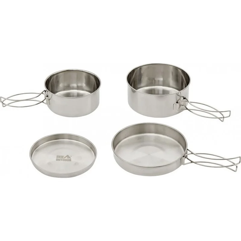 Skif Outdoor Loner Set — туристичний комплект посуду для приготування обіду на природі на 1-2 особи. Завдяки невеликій вазі та компактним габаритам він буде корисним у поході та просто на пікніку.Набір виконаний із харчової нержавіючої сталі, яка не вступає в реакцію з рідинами та не зберігає запахів після використання.Набір посуду для приготування їжі Skif Outdoor Loner Set складається з:- Каструлі зі складаними ручками об'ємом 1 л і кришкою зі складаними ручками, яка може бути використана як сковорідка;- Каструлі зі складаними ручками об'ємом 0.8 л та кришкою, яка може бути використана як тарілка.Skif Outdoor Loner Set комплектується тканинним чохлом для зручності зберігання та транспортування.