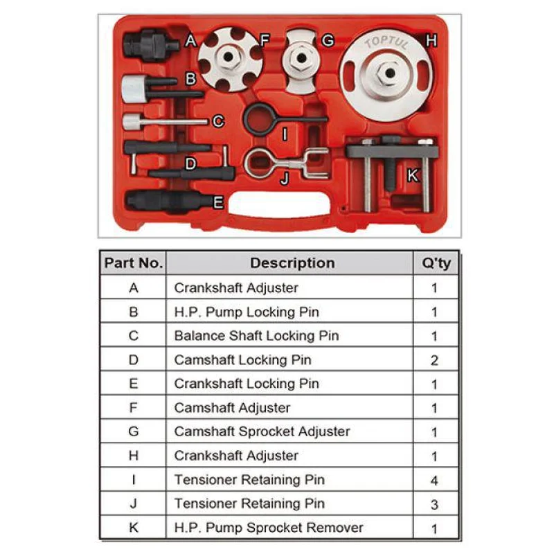 Набір фіксаторів розподільних валів та колінвалів TOPTUL VW/Audi Diesel Engine 12ед. JGAI1203