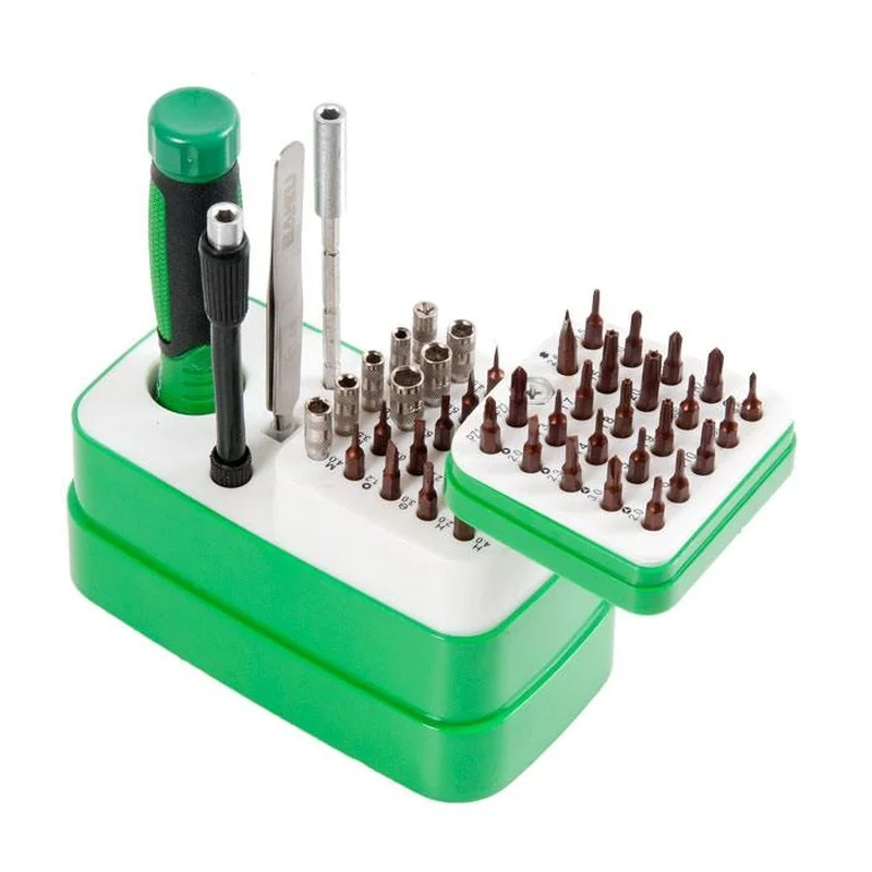 ручка з тріскачкою, 2 подовжувачі, пінцет прямий, присоска, 2 медіатори, 48 насадок