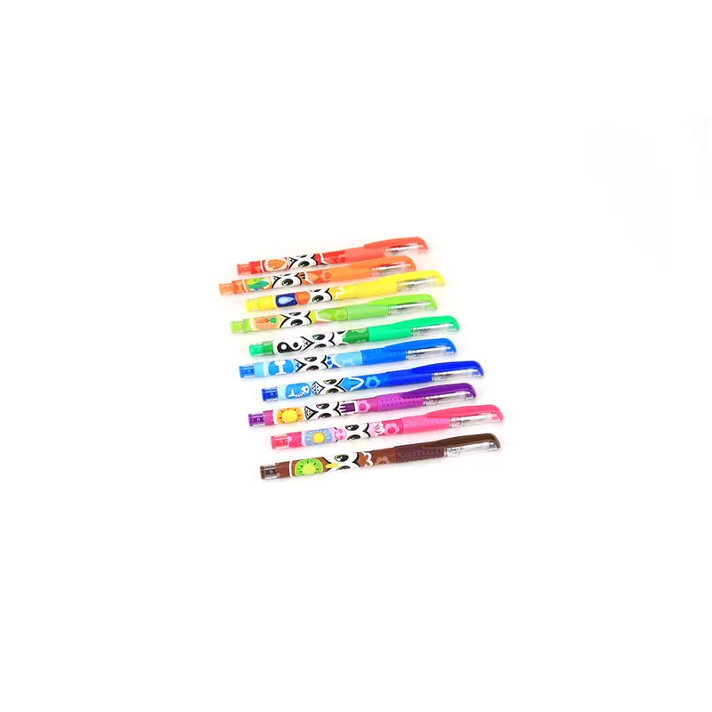 Тонкі та чіткі лінії можна малювати гелевими ручками. Це незамінний інструмент для творчості та навчання, тому при виборі канцелярії для дітей віддавайте перевагу оригінальній та якісній продукції.Яскраві кольори та смачні аромати фруктів у новій лінійці канцелярії SCENTIMALS - те, що потрібно дитині для того, щоб пізнавати світ із задоволенням.У наборі: 8 гелевих ручок із запахами фруктів.